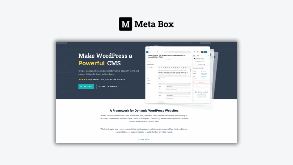 Create, manage, show, and connect dynamic data with forms and custom fields effortlessly in WordPress.
